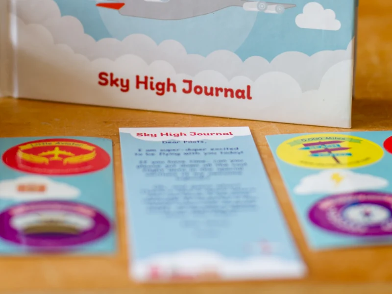 Inspired by endless blue skies and the spirit of adventure, it’s crafted with premium materials and can even be personalized with your child’s name. A thoughtful addition to elevate every flight journaling experience.
